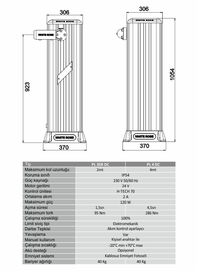 Yuvarlatılmış dış hatlarla estetik görünümü sağlanmış ve komple alüminyum gövde ile çürüme ve paslanmaya karşı korunmuştur.Mikro işlemcili kontrol paneli ile her türlü access kontrol sistemine uyumlu hale getirilmiştir.24V DC Motoru ile çalışma sürekliliği % 100'dür ve en yoğun yerlerde dahi problemsiz çözümdür.